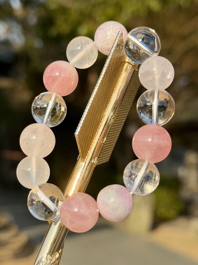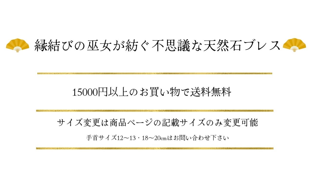 — 縁の糸を緩め、結び直す — ⸻ 兵庫県・淡路島 伊弉諾と伊弉冉が日本で最初につくった 淡路島おのころ島の、自凝島神社。 菊理媛命(くくりひめのみこと)は 伊弉諾と伊弉冉の仲を取り持った 縁結びの神様であります。 縁と縁、心と心、人と人、 そして命と命を結ぶ 調和・和解・縁結びの女神。 夫婦和合、良縁成就、安産と命の守護を司り、 人生の大切な節目をやさしく整える存在。 対立するものを調え、ほどけた縁を結び 心の奥にある想いを静かに、穏やかに やさしく現実へと導きます。 おのころ島神社の菊理媛命は かなさんが再婚したご縁を結び 当時、不要な縁を緩めて外し 今の心地よい人間関係の現実を 作ってくれた強力な女神様。 そこからあれよあれよと 必要な時に必要な縁を どんどん結んでいただき 今の豊かな生活があります。 縁を結び、愛と命の流れを整えるため 今回も一年縁結びに恵まれるよう結びました。 ⸻ 人は、傷つくと 知らないうちに心を閉じてしまいます。 信じることが怖くなり、 受け取れなくなり、 想いは胸の奥で固まり、 流れは静かに止まっていく。 固まった感情をそっとほどき、 心の扉をひらき、 人と現実のあいだに もう一度あたたかな循環を通すための一本。 さらにこのブレスは、 癒しだけでなく、 「縁結び」や「夫婦和合」「命の調和」 「愛されるエネルギー」「愛するエネルギー」 を自然に引き出していきます。 追いかけなくても 必要なご縁が寄ってくる。 言葉にしなくても心が通い合う。 菊理媛命のエネルギーが、 あなたの内側の“愛と結びの光”を 静かに目覚めさせていきます。 ⸻ ■菊理媛命からの神託メッセージ 愛とは、縛ることではない。 尊び合い、自由のまま結ばれること。 そなたが己を大切に愛でたとき 歪んだ縁は自然とほどけ、離れてゆくー、 真の愛に近い縁だけが、静かに残る。 人の目に見える縁は神の視点を越える。 望む豊かな人間関係とは何か? 自分関係との先に 誰かとの縁が紡ぎ結ばれてゆく 縁の糸が緩む年となる。 心して、歩め。 ⸻ ■使用石 ホワイトファントムクォーツ 魂の再生と浄化。 過去の重なりを超えて、新しい流れへ導く光の石。 ピンクレムリアンシードクリスタル 古代の愛と叡智を宿す癒しの結晶。 心の深層をやさしく目覚めさせる。 バイカラークンツァイト 愛と安心の両極を調和させ、 感情のバランスを取り戻す。 クンツァイト 深い癒しと自己受容。 心をひらき、愛を受け取るための石。 ローズクォーツ 無条件の愛とやさしさ。 心の傷を包み、自己愛を育てる。 ディープローズクォーツ より深い愛と安心感の定着。 女性性と感情の回復を促す。 天然水晶 すべてのエネルギーを清め、 調和を保つ統合の柱。 ⸻ ■エネルギー 心の解放 感情の修復 自己受容 縁結び・良縁成就 夫婦和合・関係修復 安産・命の守護 ご縁の調整と結び直し 人間関係の調和 安心感の回復 愛と魅力の循環 女性性の癒しと開花 強く押すのではなく、 やさしく人生を結び直すためのブレス。 ⸻ ■こんな方におすすめ ・良縁を引き寄せたい ・夫婦関係を整えたい ・大切な人との縁を深めたい ・妊娠・出産を安心して迎えたい ・愛される感覚を取り戻したい ・心をひらいて生きたい ・ご縁の流れを変えたい ・やさしい未来に進みたい ⸻ ■神社のご紹介 兵庫県・淡路島 おのころ島神社 縁結び・夫婦和合・安産、 そして調和と和解を司る 日本有数の女神の聖地。 人生の節目をやさしく整える “結びのはじまりの神域”です。 ⸻ ■商品スペック情報 珠サイズ:13〜14mm 使用石 ・ホワイトファントムクォーツ ・ピンクレムリアンシードクリスタル ・バイカラークンツァイト ・クンツァイト ・ローズクォーツ ・ディープローズクォーツ ・天然水晶 ※天然素材のため、色合いや模様、サイズに個体差がございます ※手首サイズにより珠数や配置が若干異なる場合があります ※エネルギーブレス1本分の価格です ※到着時の破損を除き、返品・交換はできかねます