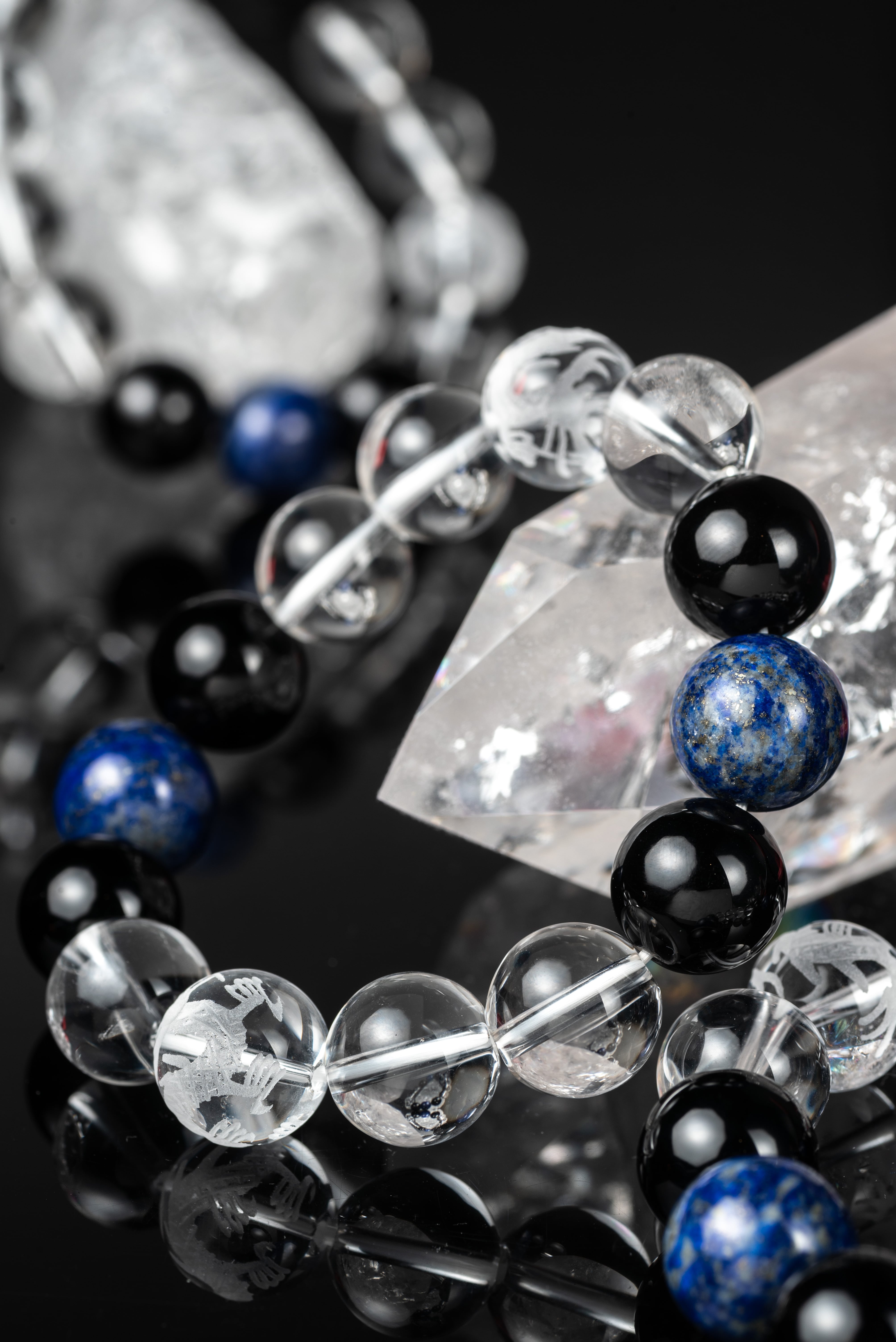 ・使用石:ラピスラズリ/モリオン/天然水晶(龍神素彫り)/天然水晶