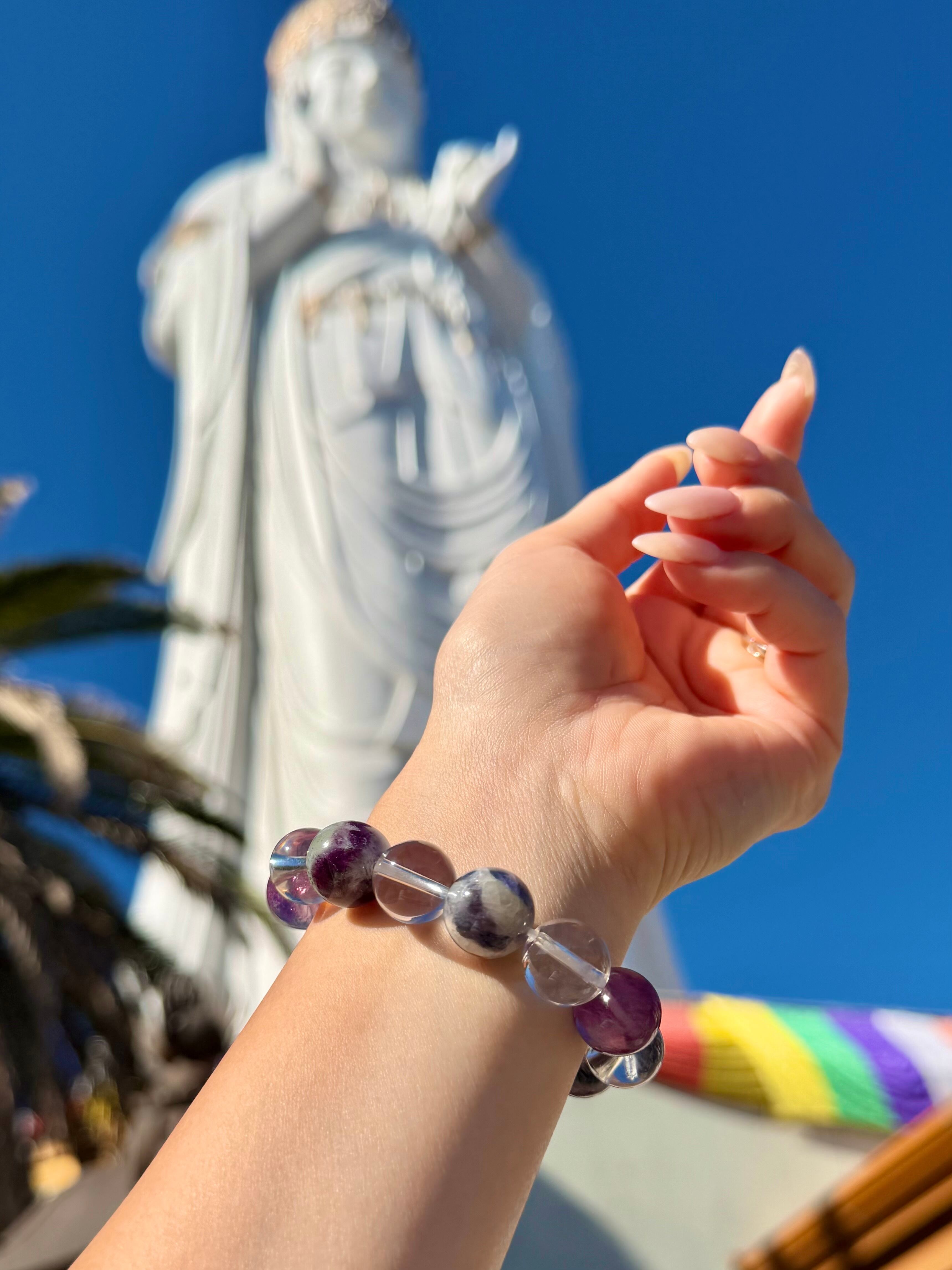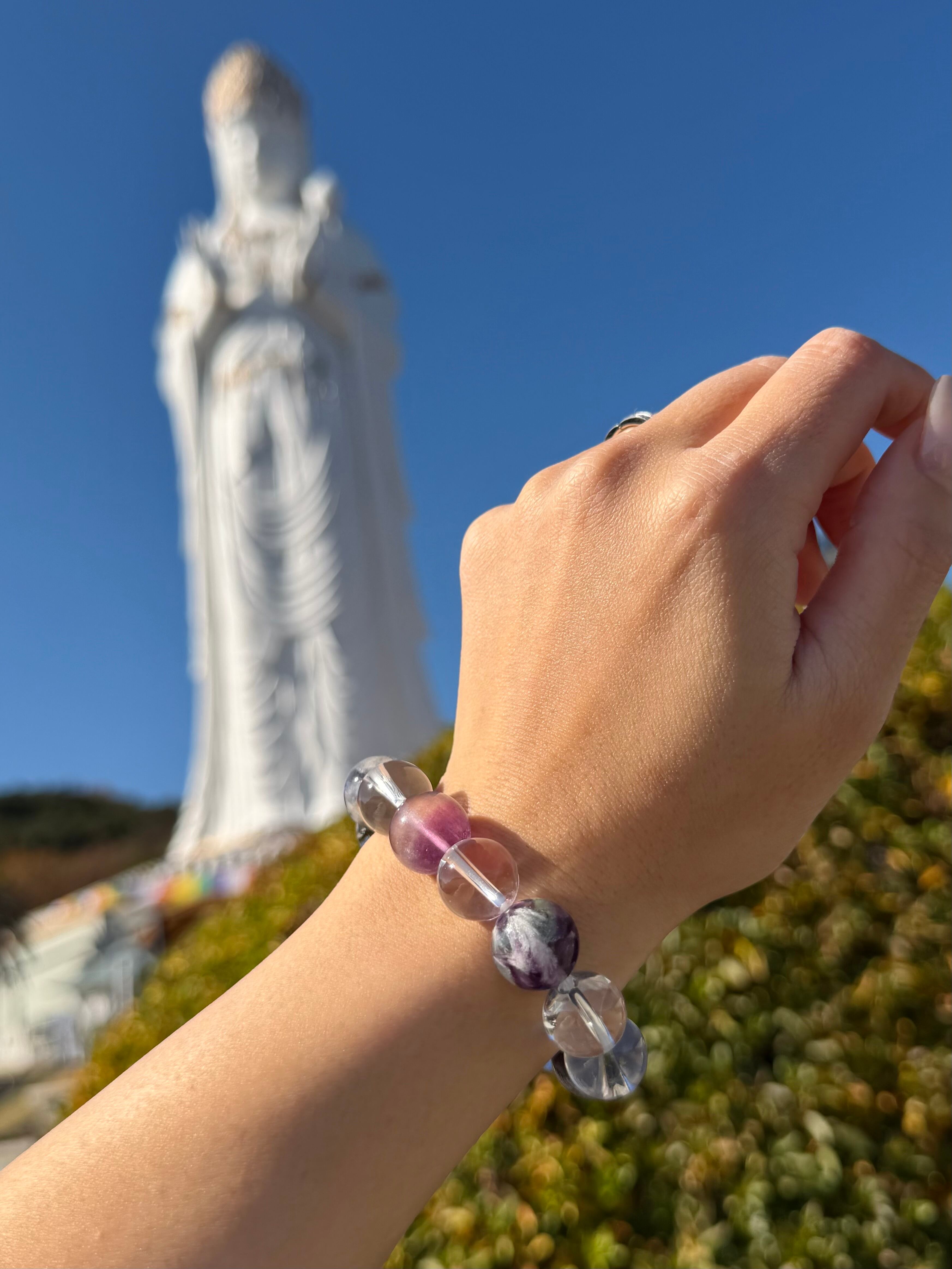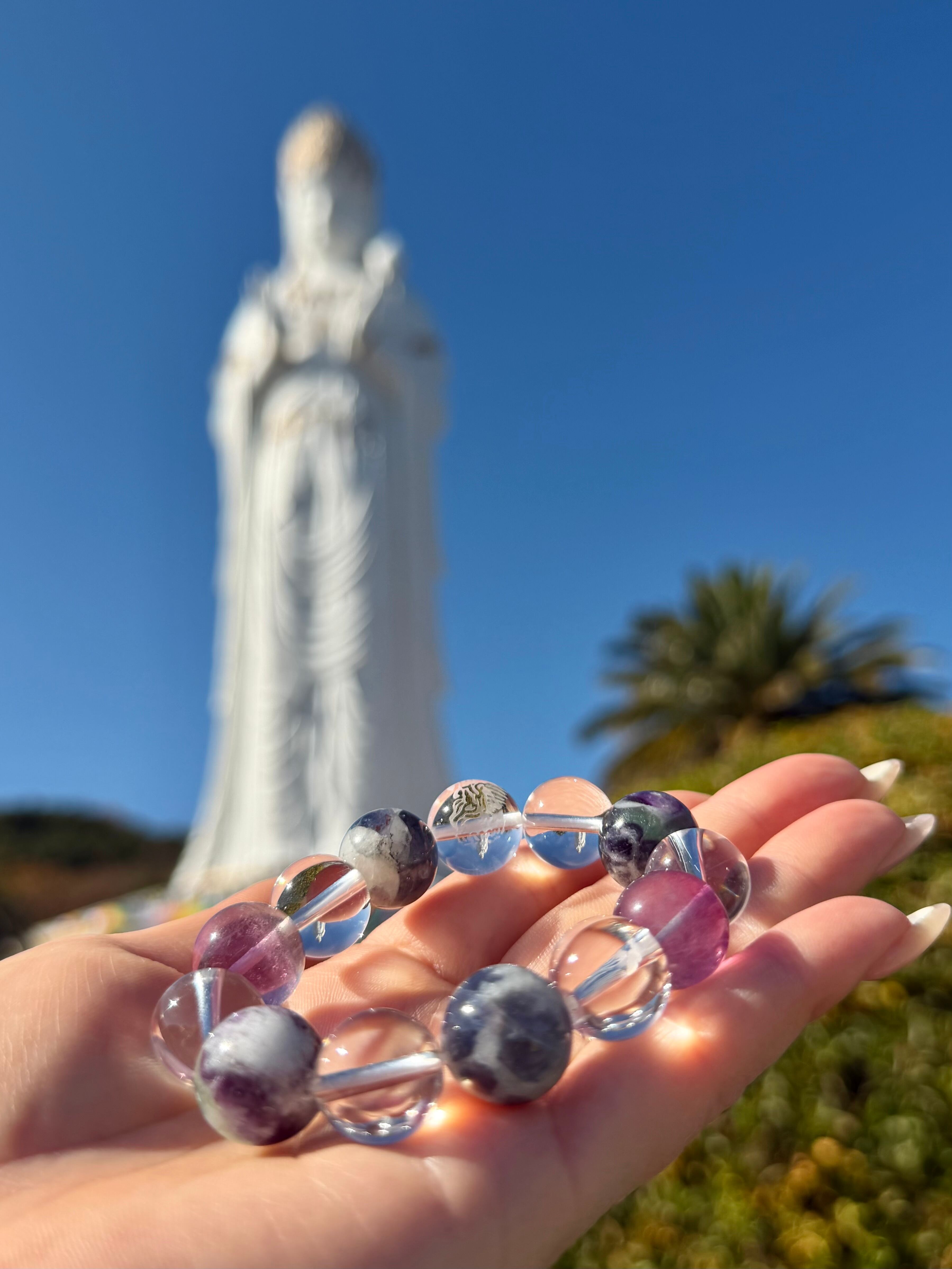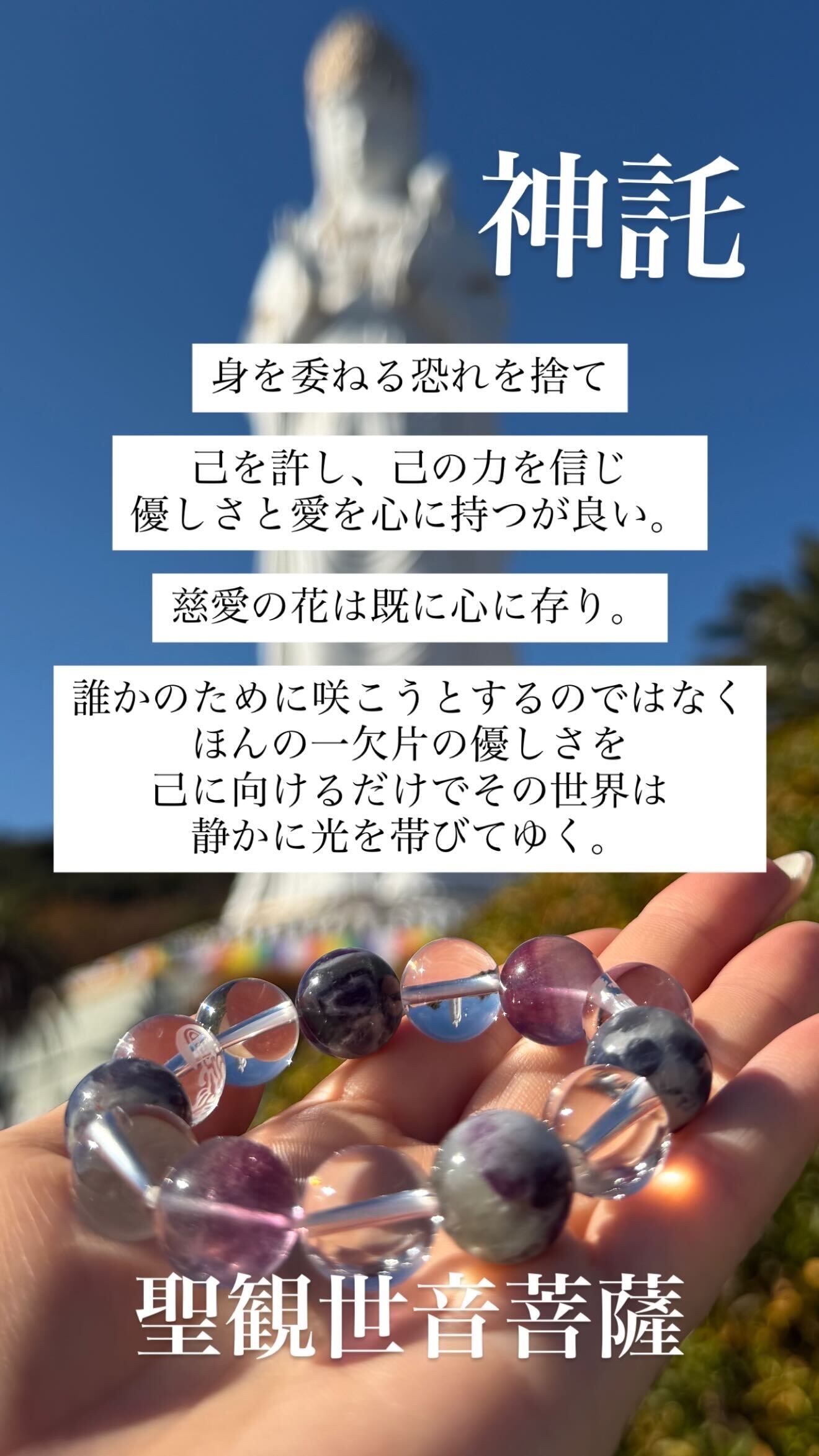 聖観音のエネルギーと清らかな天然石が重なり、