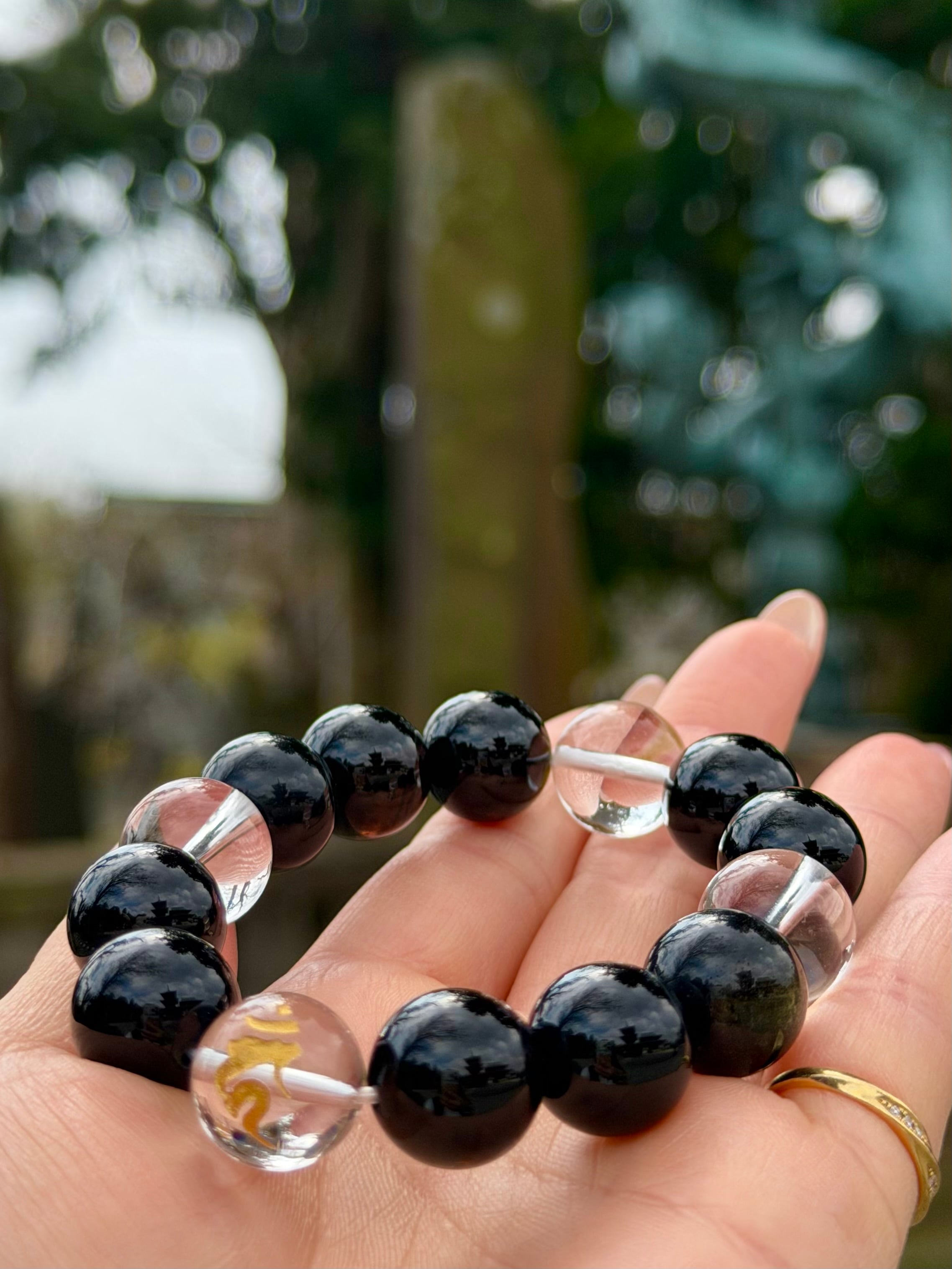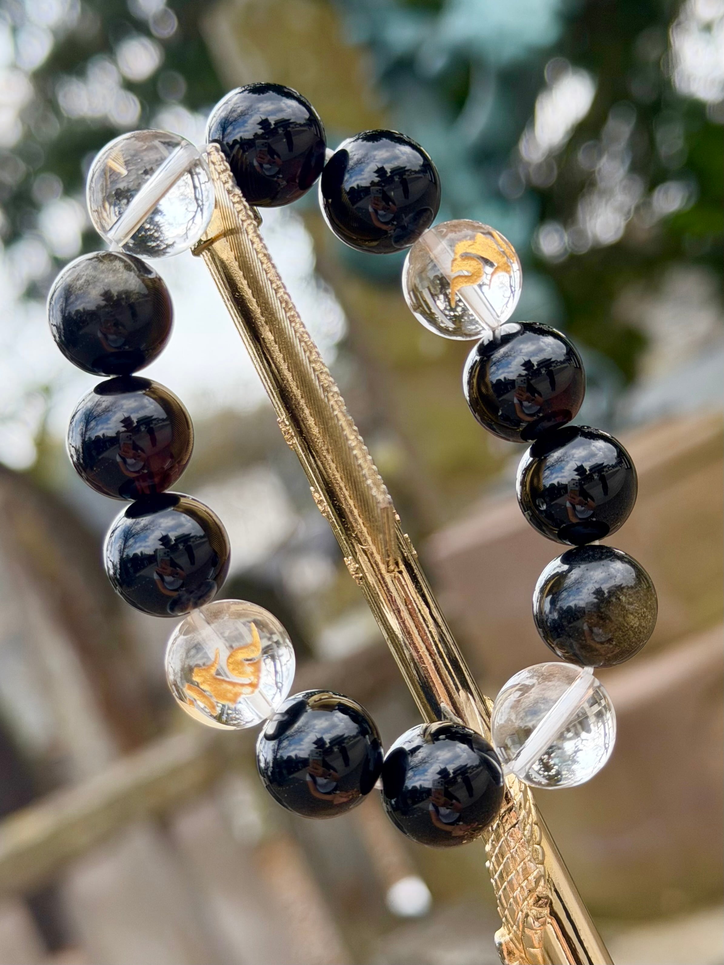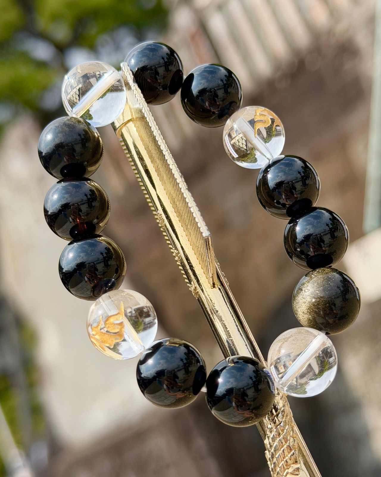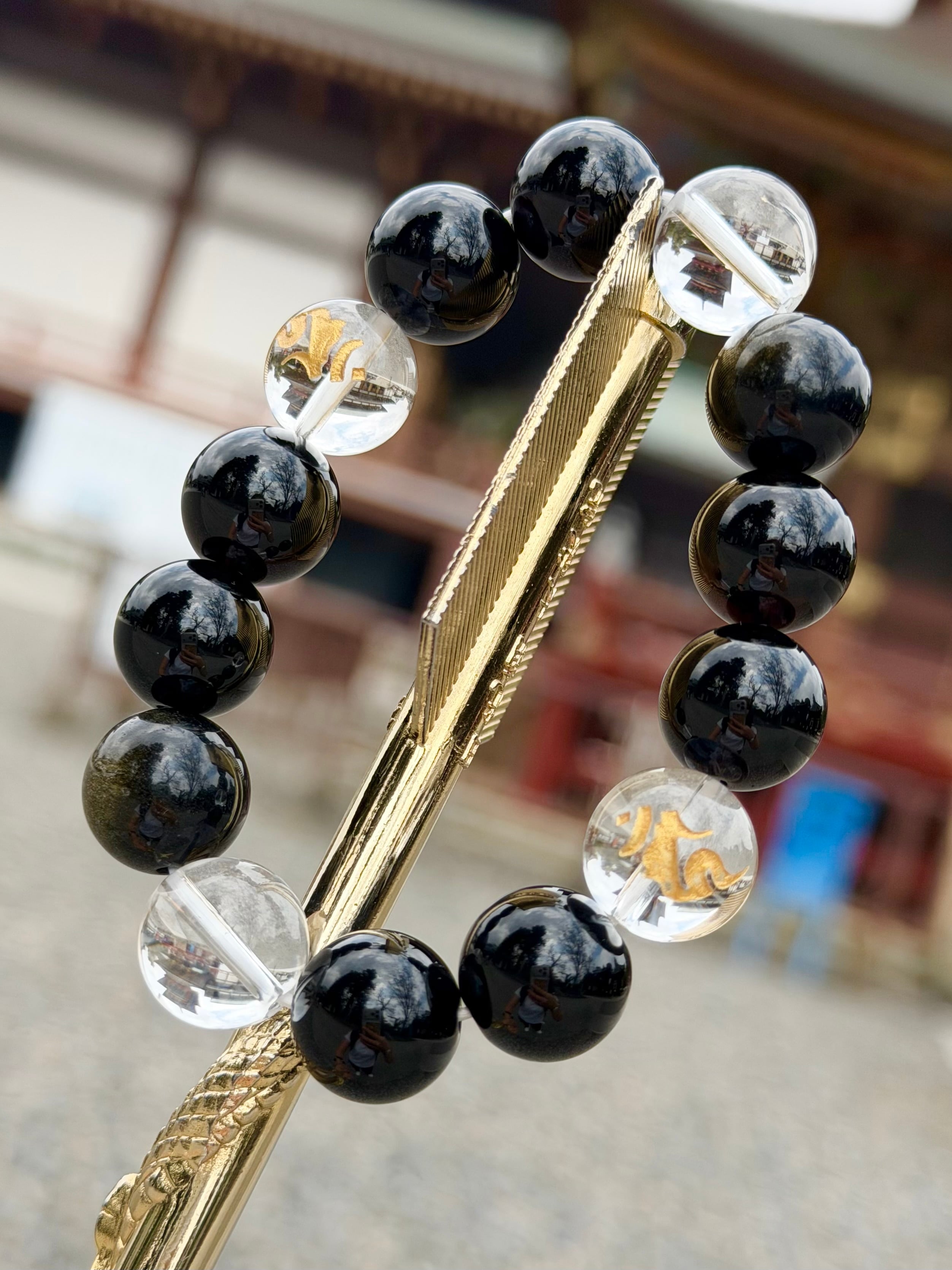 モリオン/ゴールドオブシディアン/天然水晶/梵字(カーン金彫水晶)