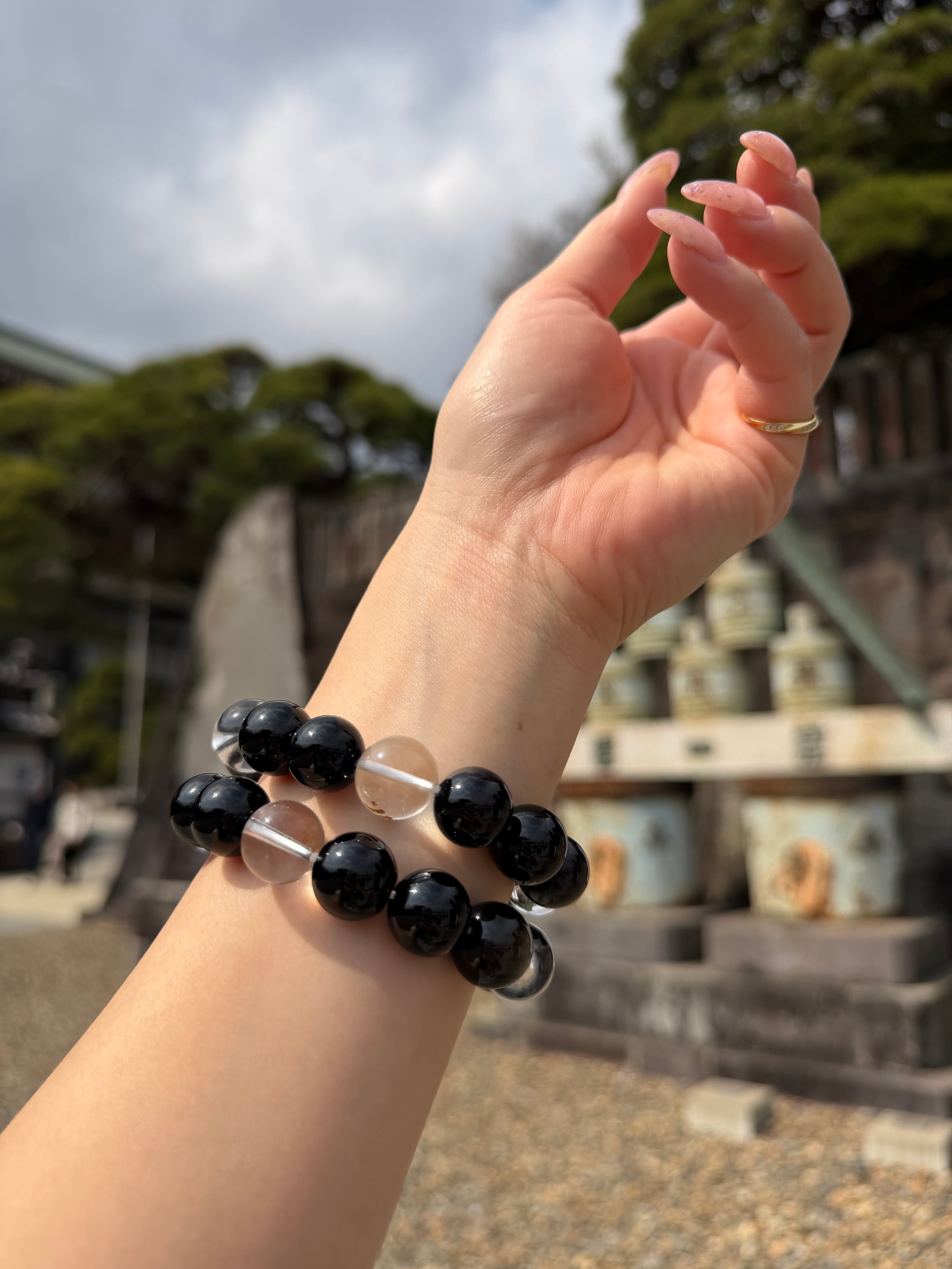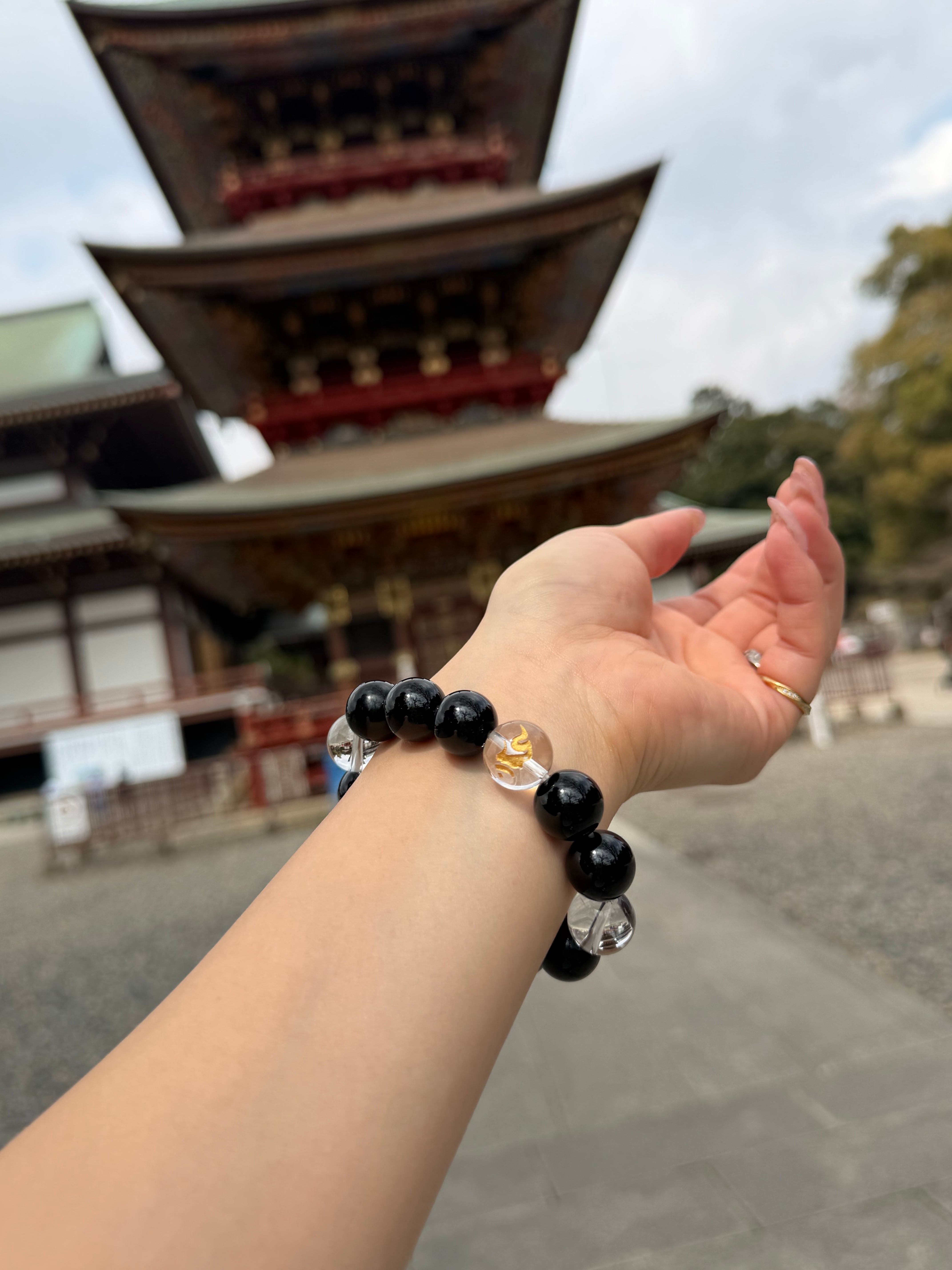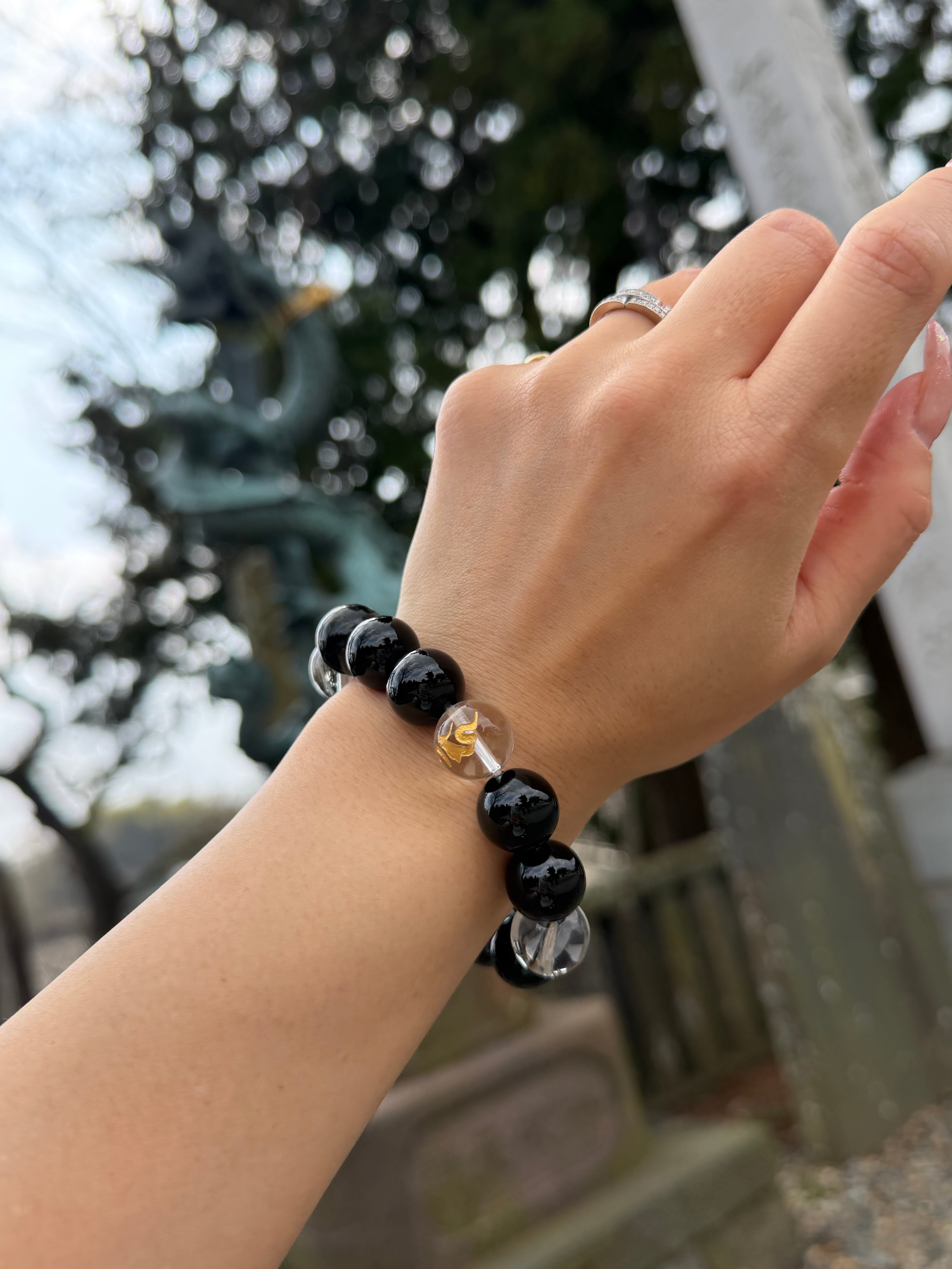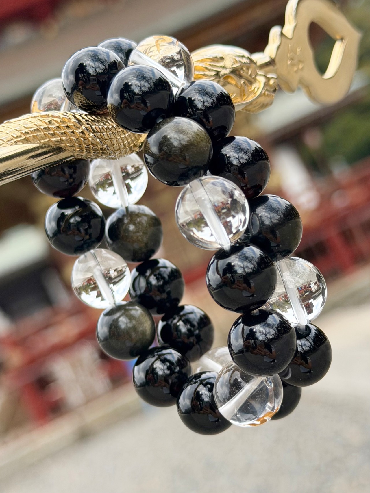 モリオン/ゴールドオブシディアン/天然水晶/梵字(カーン金彫水晶)